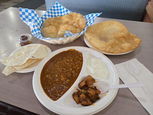 Read moreI wanted to love this place. I tried to keep an open mind. When I arrived there was one table empty but with a dirty plate. The young man ( teenager?), seemed to be the only one working the front yet there was another table of 2 that I am almost certain were the owners. Anyhow, he moved slowly, seemed unkempt, and had an air of nonchalant. Although he was very accommodating and helpful, to a degree, due to a language barrier? Once my order was taken, he went to walk away and leave the dirty paper plate on my table. I asked him to take it away. He did. The table was never wiped. Later I saw a sign to put your waste in the bin or something like that. Which is fine... paper plates and throw away cutlery. The food came and it was a lot! But I was warned. :) What I didn't expect was the amount of grease that came with the food. I can't remember the names of the dishes I had but they were chana and potatoes, and fried paneer. The flavours were delicious. I asked for water with my meal. When I reminded him he grabbed a bottle out of a case and handed it to me. Room temperature. For some, this might work. But for me? This restaurant is not worth a return visit. (I believe what I had was Chana Bhatura with...
