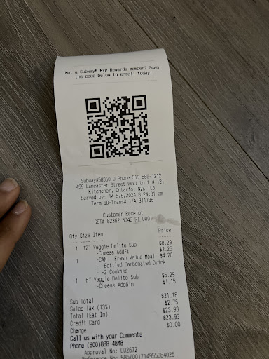 Read moreRead moreA year ago i gave a 2 star review. Tonight its 5. The man that is now there makes the most awesome sub. 3 times now hes friendly, suggestive and subs delicious. This was my old review I frequent this location and tonight I am really not happy with the 3 sub combos i recieved. For the price you pay at subway, I spent $41.00 for 3 combos and the subs were very poorly made. I started into my order with 2 subs and she rushed to the till and said $27.00 and I explained I wasnt done yet and I wanted 3 sub combos. She then began mumbling under her mask , I dont know what she was saying but I felt rushed and pressured to get out of the store . I was going to get cookies but because I felt pressured I decided against it. In additiion to the poor customer service our subs were not adequately prepared. There was a lack of toppings on all subs, and the two that we wanted toasted were still cold. I did not feel welcome in this store and we had this same problem with this same staff member a week ago. I dont know if anyone reads these reviews but I am not happy and may think twice about subway. For the cost, it's just ...