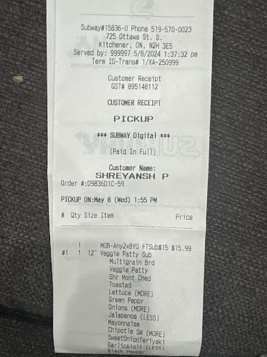 Nardeep's attention to detail in crafting the sandwich was impressive – each ingredient contributed to the authentic freshness and true taste. The sandwich itself was a work of art, and it clearly reflected the effort and dedication of the young employees at this Subway store.