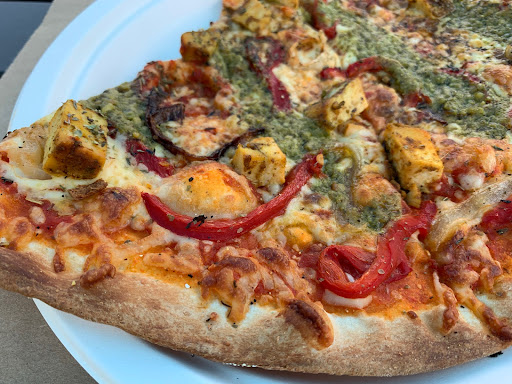 Read moreCame across this place looking for a quick bite to eat. Pleasantly surprised. Any place that invests in a wood burning oven will have good food. Had the chicken curry pizza slice and it was very very good. the crust was nice and thin but with lots of flavour, the curry chicken was very tasty.. not overwhelming... just right.. i decided to try the veggie slices as well.. very very good. they also have bagels, bread and other baked goods... i will need to find time to come by this place again to try other things. The young man working there was very nice and provided great and fast service. they also have a great little patio with shade that many folks seemed to enjoy. Great...