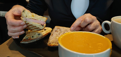 Read moreAs an only English speaker I was nervous to enter on my way through Quebec. Was delightfully surprised! Everyone was extremely friendly and I used Google translate to help the language barrier but the barista knew some English! Now let's talk about the food and drink. The ham and cheese sandwich was amazing, bread was so fresh and tasty! The chocolate caramel tarte was to die for, perfect pairing as the chocolate hits you first then the toffee flavor. I also got an almond croissant which was amazing too, filling was the perfect amount of sweetness. And now for the Most amazing part! The Oat milk Hot chocolate. I have never had a hot chocolate this good and I've been all over Canada... 3 times... You have a choice between dark, milk or white chocolate. Always choose dark for the richness! 10/10 amazing welcoming service and 10/10 for the amazing food and...