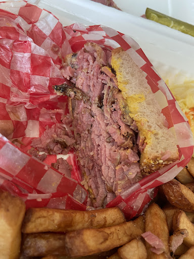 I've had the opportunity to have either their smoked meat sandwich or smoked meat poutine during my various trips in the area, and have never been disappointed. Their meat is not too salty nor fat, or rubbery: it has a good texture that breaks nicely as you bite through it.