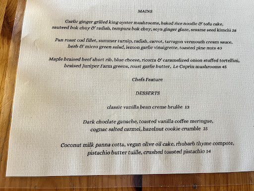 The current dessert menu has two mint options and one crème brûlé. This was a let down as I'm not a fan of anything mint. As for the crème brûlé, I would expect something a bit more riveting from a 4.8 star restaurant.