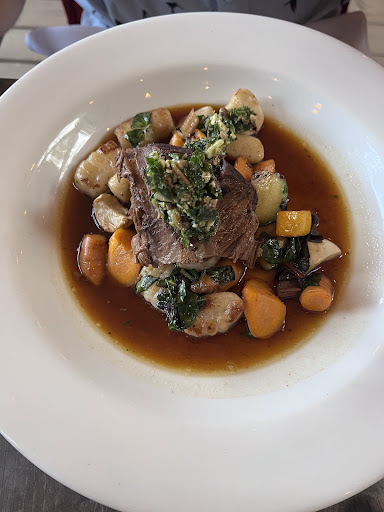 This restaurant has a cozy little patio with a nice waterfront view. It would be a great date night spot if you're not in a rush. I waited close to an hour for the main course(57min). The appetizers and desserts aren't fantastic. The main course was very good although both the Gnocchi and Beef short ribs lacked color in presentation. Both are very brown.