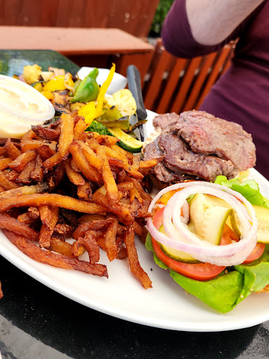 Read moreWhen shopping for fruits. Veggies, cheese, salmon. Stop by to eat there.Had entrée of fried calmars and split a chicken burger with fries that were crispy and Nice green Salad with veggies and mandarines. And...