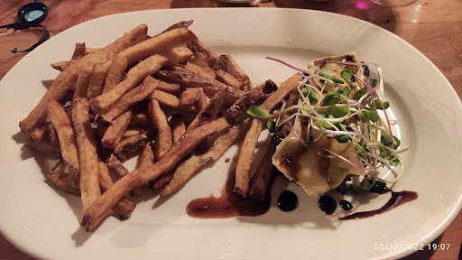 Main courses weren't as much to write home about. They were good, but maybe not to our tastes. The Mrs enjoyed the risotto, but found it a little "much". Translating to "it was good, but the richness of the duck was lost". Meanwhile I had the bavette. The plate was good and it was nice to get some actual home style french fries that were done right, but the steak did pack a punch. My initial thoughts were that they used liquid smoke, but it may just be the wood and smoking style. With the sauce and cheese it was good, but just the meat alone left almost a bitter taste in your mouth. Nothing like I've any time I've smoked meat at home.