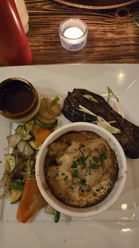 Read moreWhen selecting this restaurant, I read a review that stated we needed a reservation to come here. I called with a 30 minute heads up for a party of four. The woman told me she had one table left and would save it for us. We get there and are not greeted right away. We stood around looking for someone who may be a hostess, which was hard to tell because there is no sort of uniform. The bartender seems to be the only server and was also the one who answered the phone. She takes us to a table surrounded by two other empty tables and says again this is my last table. We roughly spent two and a half hours here and not by choice. We were starving and were ready to order right away. We were not checked on for a water refill until the food came and that was the only one we got. My pork was undercooked and full of fat. My fiancé did enjoy his lamb and our friends enjoyed the deer. This is the only reason this restaurant gets three stars. Portions are small for the price. The service was awful and the amount of time to get anything was awful. The bathrooms are not marked so I guessed they were unisex and ended up in one with the toilet seat up. Gross. The other two empty tables were never...