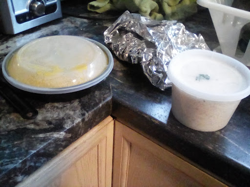 I ordered the veggie mango curry with rice on the side as well as an order of garlic and basil naan. I asked for the mango curry to be mild and here, mild means MILD! My spice wimp self is loving this food, no burn at all but still full of flavor. The naan is HUGE!