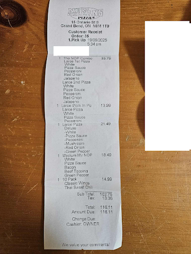 Visiting from Toronto. Came in with a friend to get food for our families. The deal was good, so we decided to give it a try. We were told food will be ready in about 20-25 minutes. We spent most of the waiting period outside, but close to the end decided to walk back in. I always observe everything and notice things. Well, the first thing I realized that that this store is being ran by 3 women. Then I realized why - all the dough was already rolled out on baking trays according to its size - easy job for literally anyone hired, as it's really hard to screw up a pre-made dough. Customers were coming in for their orders every so often, so we continued waiting to give it a fair try. We ordered a deal with 4 larges. When the boxes were given to us, we have noticed that they were much lighter than at any other pizza brand. When we brought food home and opened the boxes, the toppings were scattered very lightly and green peppers were not baked along with other items but just placed fresh after that pizza came out of the oven. Giving a 5 to their customer service, but in a good sense should give only a 3 for using a pre-made dough and low amount of toppings. Personally, won't give it another try, even though our teenagers said it...