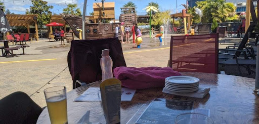 Great spot, friendly staff, don't order food. The outdoor patio is great, splash park for the kids, fun little cabana's. Service is friendly but a bit slow. The food is bad. The only burger on the outdoor menu, the smash burger was VERY overdone, and the only toppings on a very dry burger were burnt onions and mostly melted away cheese. There was no tomato, letuce or sauce of any kind, it was suuuuuper dry and flavourless. It is also $12 and comes with (rather bizarrely) potato salad that the server immediately recommended I change for fries (no mention of the $3 upcharge for these - $3 FOR FRIES with a burger). The fries, as far as I can tell are just the breaded ones that Costco sells, also not very good. My wife got a caprese salad ($16) that was a beefsteak tomato sliced with sliced mozarella and a drizzle of balsamic. It was small, had no basil (required for the salad to be called a caprese salad) and underwhelming. The kids meals, chicken strips and mac and cheese, were good and $9.99. The strips were flavourfull although the fries were still a let down. The mac and cheese was good as well. The drinks were cold though and lots of fun slushies for the kids. If this place put some work into its food menu and started putting out options to support the more premium prices they are charging, it could be epic. We spent over $100 for food (mostly left uneaten) and drinks. Our server was lovely and comped my beer after I let her know the burger...