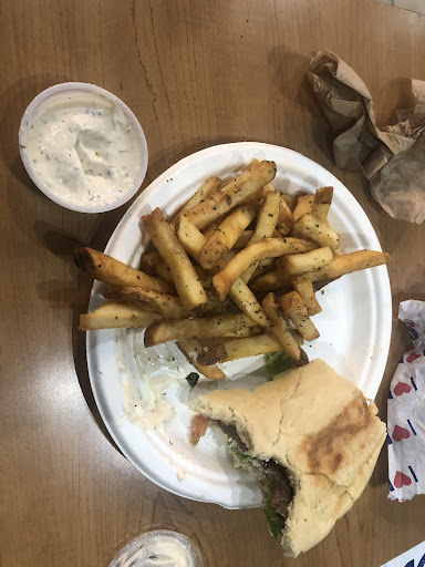 THE LONG: I ordered a gyro pita wrap combo (which comes with fries and tzatziki dip) which costed me $13.81 after tax. The wrap itself was rather unremarkable, though still satisfactorily tasty and filling, but the fries, THE FRIES. For an afterthought of a side dish, they were phenomenal. They were nice and thick (I can’t stand fries that are all salt and no potato) and perfectly golden yellow; crispy but soft and moist but not greasy. However, what really sets them apart was that they were seasoned to perfection with what I am pretty sure is just oregano, but that’s still a cut above every other “1 $ on Google” restaurant I know of, and that’s not even mentioning the Spartan quantities of them given to you. They’re to die for when paired with the tzatziki. Unfortunately, the lobby is where this restaurant falls short of 4 or maybe even 5 stars. In spite of being a basically brand new location, the decor and ambience consists of 00s era Subway-esque kitsch stock photos with a thin veneer of “Greekness” thrown over it. Photoshopped women, unrealistic produce, and the occasional photo of the Greek waterfront, all on stark blue & white walls illuminated dimly by nauseous pale-green LED lights (it’s probably not as bad with daylight, but I went at 9:30 PM). The only thing to distract you from what you see is what you hear; FM radio top 40s music blasts from the Olympus, disorienting you, beckoning for your attention, ALL your attention. I’ll take it to go next time, thank you. At least they offer you paper plates when you ask to dine in, and the lobby has many comfortable booth with outlets to avail yourself of. Oh, and the service was unremarkable. They just had one guy working at that time and he did the job, there wasn’t much to really...