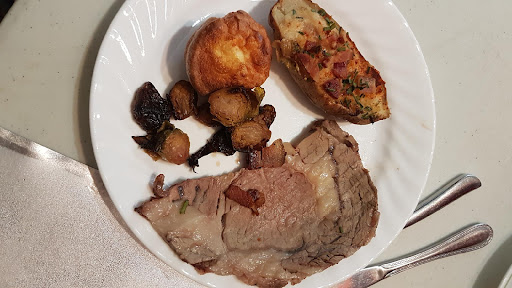 What they got was a very fatty dry piece of meat, one burnt brussel sprout cut in half, soggy mushroom and half a potato. As you can see in the picture very different than expected.