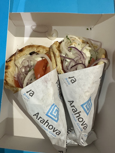 Read moreThe vegan gyros and the souvlakis are the same thing: pita bread with a lot of onions and some tomatoes, spinach (I think?) and lettuce. What's really sad is that there is no meat replacement in them; so no source of protein, and also no sauce of any kind. Just dry vegetables (a mountain of onions).