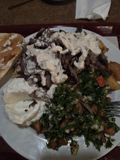Read moreIf i could put a zero star I would. First the women is touching all the things at the cash( credit card/ machine /money) and then doing the sandwiches just after.... there is germs on the cash.... the service was long and they where very not pleasant peoples. The meat was dry both beef and chicken. I ordered a saj sandwish and when opened up to eat it was falling apart and the way they rolled it up was very loose and weirdly made. Didn't like the atmosphere way too dark and depressing! Would not go there anymore! You can get better shih taouk...