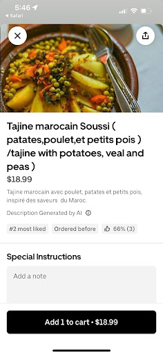 Read moreThe taste is good, but everything they share in the pictures on Uber Eats doesn't match the size of the reality. The tajine didnt had potatoes (maybe one cutting in pieces) and it cost me 60$ for the mini tajine, one mini pastilla and one brioute. Not even enough food for 2 adults. We tried to call them and they were mean during...