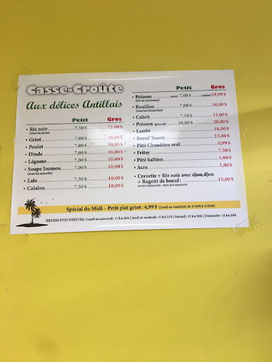 Read moreTried this place cause it was close to my work. Unfortunately most of the dishes on their menu I was in the mood for weren't available that day, so I ended up trying their calalou plate. It was edible. They also didn't have any "cash only" sign anywhere in the establishment, so I had to go to the Couche-Tard next door when they handed me my food, to make an ATM withdrawal on which I was charged a 3$ fee cause it wasn't my financial institution's machine. I don't intend to buy from...