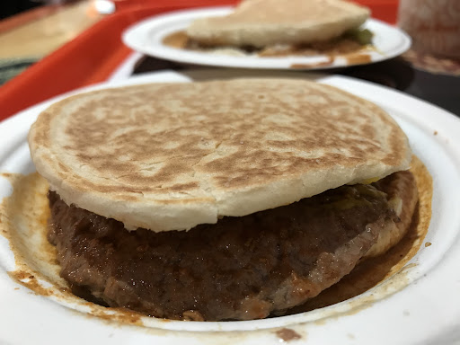 Read moreSaw many good reviews for this Montreal experience. Tried the Quattro burger with their signature spicy sauce. Knew what I was about to experience based on other reviews. Buns remind you of pancakes. Burger itself was typical fast food thin burgers. Sauce was a nice unique flavor. It was served with two popsicle like wooden sticks to presumably eat with. No way you are picking this sandwich up so used the sticks like knives and chopsticks. Definitely something different and not bad, just a little strange for utensils choice. I would classify this as a unique experience but a tough repeat customer spot with so many emerging choices in the greater Montreal area. I'm sure they have a loyal customer base as their flavors and presentation are very unique and things you can't...
