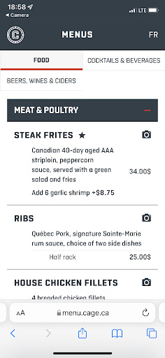 Read moreOrdered take out, cost 147$... My burger patty from the mushroom burger was burned and all I could taste from it was the burnt food taste, it was gross. I also took the pepper sauce steak and replaced the fries with a poutine, they gave me 6 pieces of cheese curd and a small cup of sauce. The steak was good but the portion was less than half of the picture in the menu, they also somehow burned the fries, the taste of them was horrible and neither me or my spouse could finish the fries in our meal. My spouse got seafood that was good, but not for the price, her fried cauliflowers were not fried at all everything was soft and undercooked. she also got a chicken wrap, there was 2pieces of chicken in there, really small one and the rest was entirely salad, it looked like someone dumped an entire bag wet salad in there, the wrap was soaked.