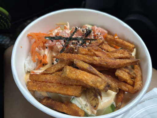 Not usually a big fan of poke bowls, my friend recommend me their place and wager that if i didn't like it she'll pay for my lunch. I loved it, their poke bowls are truly different and have converted me to a poke bowl lover! its all in the sauce, whatever magical ingredient they put is really working! i usually ask for an extra sauce on the side. It perfect for a lunch meal because it is light but big enough that you can have some left over for dinner. I usually get the Sama bowl which is a combination of salmon and tuna chunks mix with corn, peas, radish and mangos on top of mix garden salad with season rice for the base. Can;'t forget the panko for a crunch in every bite! My coworker chooses mix greens only for a healthier option. Sadly i devour my poke bowl before i could take a photo :(. Love the service ,...