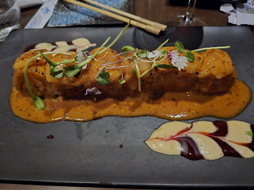It was my birthday celebration 🎂 🎈 and we love sushi 🍣, the food, means the sushi in this place. It is indeed AMAZING in capital, and prices are really accordingly. Every dish is really well presented, and the sauces are really putting another step up every dish presented. That's why I enjoyed as few times in my life the "Thon Katsu" served over a rainbow 🌈 of 3 sauces, the way that when you pass a piece over the sauces, is an explosive combination that ends with the Thon melting 🫠 in your mouth, was a really pleasant feeling rarely felt, because not always the expectations are unexpectedly over passed, others signature sushi dishes were order, all with the same pleasant sensation. But... the service... the waitres are nicer and explained all in detail, even they are quite professionals, but the dishes rotation it's slow as I ever saw in my life and after works for almost 24 years in Hotel's restaurants service, we booked for 6,30 and the drinks arrived 40 min later and first dishes after an hour... well, short story, we leave at 9,50 without ordering dessert 🍨 because it was toooo long the waiting, but I have to say that they have the delicacy of bringing an slice of Kate with a candle to sign HBD. My critics are mostly about time, that it's the only thing we can't recover, all the rest you can...