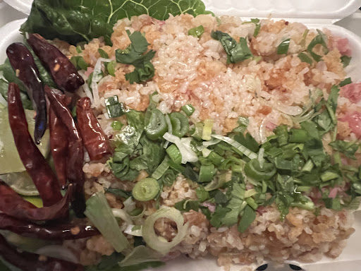 Read moreLa première fois que je commande de là bas en utilisant Doordash. J’ai toujours voulu essayer la cuisine Laotienne et Cambodgienne et j’étais excité de découvrir de nouvelles saveurs. Ayant placé ma commande un peu tard proche de l’heure de fermeture, j’ai pas voulu prendre de change et j’ai opté pour un riz frit NEM KHAO et lors de la réception de ma commande, j’ai toute suite remarqué que le plat n’était pas chaud du tout avant même de l’ouvrir. A mon étonnement, c’était un riz froid qui avait l’air d’avoir été mis dans un contenant dans un frigo qu’on a essayé de me servir. De plus, on peut même voir sur la photo la fermeté des herbes par dessus le riz tellement qu’il était froid incluant la viande et la laitue.
