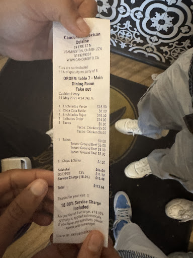 The gentleman that was serving us was lovely. Henry’s service was great. We asked for chips and salsa to start and he informed us it would be $2.50 which was nice to share the price if it wasn’t on the menu. We ordered a few things - veggie enchilada (the veggies tasted bitter to me might be better with a meat instead but the rice and beans were really good!!) beef burrito (tasty) and the chips and salsa with guac. When we ordered the guacamole I wish they were as transparent to let us know the price of it. (They didn’t charge for chips and salsa but that still does not justify the price of the guac) I am still shocked to this day at this charge. It cost more than the beef burrito! And the portion size was TINY.