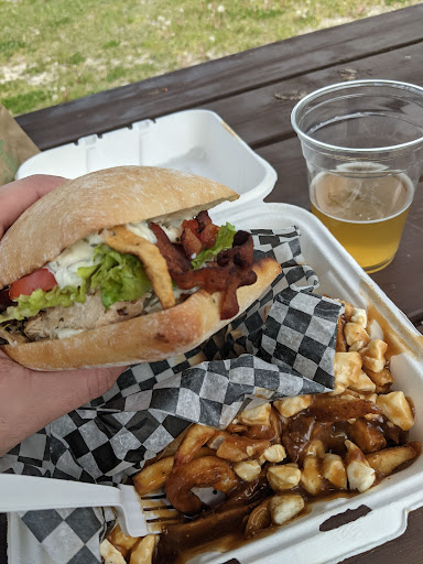 Read moreVraiment bon! I took the club sandwich Le Sainte-Emmelie avec un Poutine and a blonde bière. It's local, good, and best spot for a quick bite before the trail that will take you on a nice walk next to the river! Their club sandwich was delicious. Great Poutine also. Views are nice from the picnic area. A...
