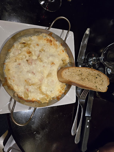 The food was mediocre. Nothing terrible but not great. Mushy boiled vegetables like you’d expect from a cheap diner but on a $50 plate of mis-cooked steak, okay pasta, and an underwhelming burger. The appies may have been okay but they had clearly been sitting under heat for so long no one bothered to take a second bite. The waiter filled our drinks once and apologized for the wait, he was friendly enough but really didn’t seem like he could be bothered. Definitely not somewhere we’d...