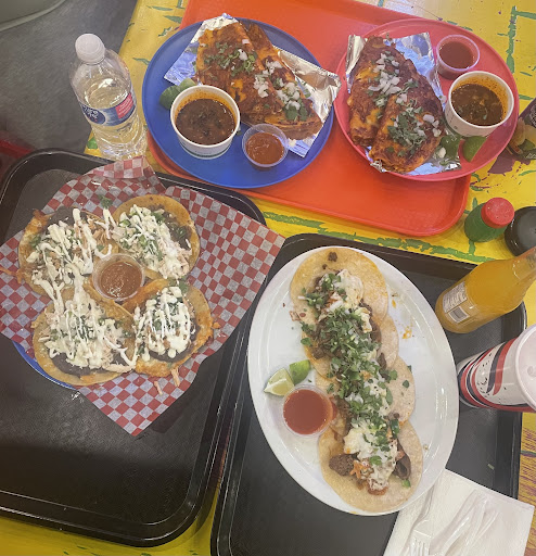 Read moreFor a fast-food Mexican experience - this was excellent. Sadly they had run out of guacamole- but, that’s ok. We started with the queso cheese dip and natcho chips. Nothing too exciting. But - bring on the double beef enchilada and the birria corn tacos stuffed with pork and now we have ourselves an incredible dinner! The salad that came with my enchiladas was crisp and fresh. I had two choices of rice, black beans or refried beans, multiple choices for salsas, enchilada sauce and salad dressing. The birria corn tacos were jammed full of pulled pork, grilled with cheese to perfection served with a Mexican soup for dipping. Now, what I didn’t like was all the serving waste - my enchiladas was served in a metal tin and I was given plastic utensils. I recognize this saves on having to wash dishes but I cannot imagine the landfill contributions. I would have given five stars otherwise. Within the first 10 minutes of arriving there were at least 5 skip the dishes pick-up so clearly this is a well-respected local eatery. We are from out of town, would come back again and would recommend. All of the food handling employees were friendly; there was a young fellow cleaning and wiping the entire time - so this place is clean too! The interior decorum is adorable. We finished with...