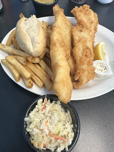 Read moreThis fish and chips restaurant makes okay dishes. Several times I've had wet batter. I've now had to specifically tell them that every time I order and to cook it longer because of that. I would recommend you ask for the fish to be cooked well done due to this for sure. Their fries are average, they aren't amazing and get old fast as in you don't really want to go back for the fries again based on that. Their coleslaw is very expensive for the amount they give you and the taste is good, but not excellent. The restaurant looks beaten down and it's obvious they don't put money into fixing up the restaurant for customers for a better experience with dining in. Their service is sub-par as they don't really seem to care about the customer's experience. They just give you your order and don't greet you or say have a nice day or anything in between. When I've said things about my order they also don't seem to care about rectifying the situation.