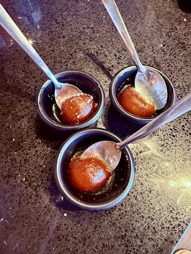 My partner and I went in for a sit-down meal last week for the first time and we were very impressed! Our server was friendly and attentive. The menu has a lot of offerings. My partner ordered the lentil soup and we split the Veggie pakoras. We could not decide on mains so we ended up with the butter chicken, lamb curry, chicken Tikka masala and aloo gobi and a side of rice and Naan. Everything was delicious! We ordered mild as I love Indian food but I'm sensitive to spice and I found everything to be flavoured wonderfully without much heat. My partner got a side of two different hot sauces - he loved the red one in particular. The serving bowls are beautiful and they are deceptively large portions. We had leftovers for at least two other meals! We were treated with a complimentary dessert (I believe it was Gulab jamun) at the end and my goodness was it yummy and a perfect little sweet way to end the meal. We will be back for sure. Everyone should check this place out as we hope they will do well here...