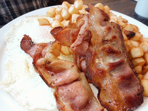 Read moreGreat spot for breakfast or lunch. Kids loved their big plates of pancakes (about 8 x 4" pancakes!!) and crispy bacon. Large portions of good food. 2 of our group ordered the Poached Eggs & Tomatoes, which included sliced fresh tomato, a serving of cooked vegetables and a toasted English muffin. They have gluten-free bread available. One of the specials featured corned beef hash. Good coffee. Very cool decor featuring real vintage advertising and antiques. Lots of tables for 1-4 people, plus a couple of larger tables that seat 10. Excellent service from the lovely Parminder. Everything is clean and bright, including the washrooms. Plenty of parking....