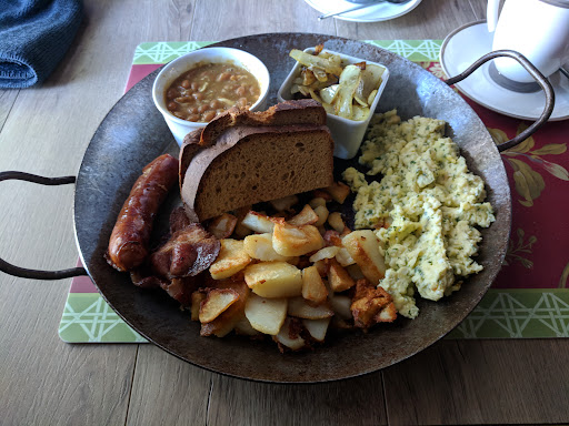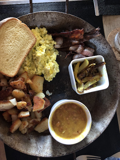 We arrived this morning for a breakfast with a group of 9 (5 adults and 4 children), we are visiting the area and like supporting smaller businesses during our travels. When we arrived (at 10am when they opened) we were met with a very unpleasant and overwhelmed waitress, Karen. She asked if we had a reservation, we didn’t, but there was only one other table of two on the patio, she stormed off saying she would have to “talk to the owner”,she didn’t give us the choice to sit on the patio. When we asked for a high chair she got huffy and stormed off, to which we told her we would get our own from the car. The children (ages 5-7) were trying to get settled (who was sitting next to who) when, who we assume was the owner came in and was very intimidating towards the children, pointing his finger right into one of the boys faces and saying “when you’re in my house, you listen to me”. It made us all feel uneasy and we should have left at that point. We watched as two other tables of two got seated on the patio, and she went and took their breakfast order before even asking what we wanted to drink. Finally at 10:25 she came and took our order, she mentioned again that “we should have had a reservation” I told her we aren’t from around here so we didn’t know it was recommended, she was very rude and seemed very VERY annoyed by us. When she was taking the kids order, one boy was excited to show her his new animal book, she got down in his face and said “I can’t hear your sister” very rudely, and when it was his turn, he just tried to show her what he tried earlier but she snapped back saying “are you going to eat or just tell stories” again in a very rude tone. We didn’t get our coffee/water until 10:49, which was served by a lady who usually works in the kitchen but they pulled her out to help, she was very friendly and kind(didn’t catch her name). We asked her if our orders were started, to which she said they weren’t but should start to come out in about a half hour. We told them we were leaving, and mentioned to her how two tables had their order taken long before our order was taken. When we left, Karen still went on about reservations, to which we told her what would be the difference if a group of 4 and 5 came in at the same time, )we were physically sat at different tables)and asked if the people on the patio (about 5-6 tables at this time) had reservations, and they didn’t. Karen kept coming up with excuses as to why things were so slow, but never apologized. We paid for our coffees and took the kids to McDonald’s where they enjoyed their breakfast. Would NOT recommend this place, the food might be good, but with such terrible service it...