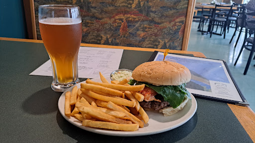 Very comfortable place with many tables and windows for being delighted with the sea view. The menu has several options and a fair price. I asked for a lobster-beef burger đ (a special dish out of the menu, called surf/turf burger; a little more expensive), delicious đ. I was attended by a beautiful waitress (now I'm tented to go back just to see her đ), very attentive and friendly. My beverage selection was a local beer from Sherburne, a good pale ale called Hunky Dory.