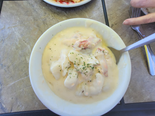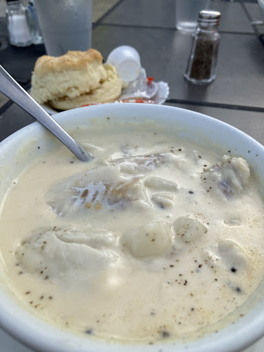 Read morefish and fries--fish was overcooked and greasy, fries tasted burnt chowder--thick, not like a soup or chowder at all. Mostly potato. Tasted of raw flour. Seasonings were sprinkled on top, so any bite from the top was very salty, while the rest was...floury and potato-y. Chowder was served with a very sad grilled cheese consisting of barely grilled white bread and sliced, processed cheese. Waitress was excellent, so way to go staffing front of the house? Also the iced tea was real...