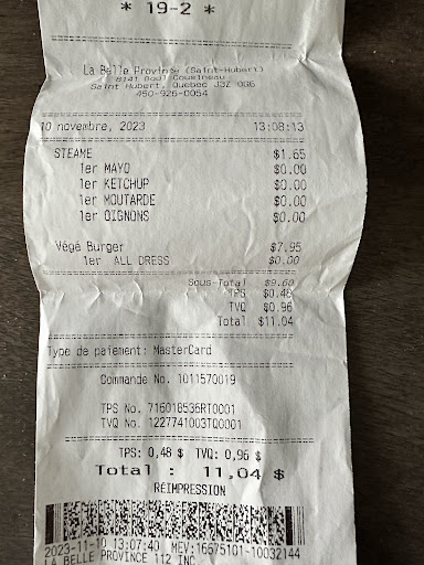 I feel so bad today. Every time, I go to here, whatever I ordered, I’ll give them around 15% tips. And today too. My mother and I went to there today, and order 1 sandwiches combo and 1 regular size poutine. Total $39.00. Ok, and I give them $6 for tips. After my food ready, I asked them “spicy mayonnaise” for my fries, and then, they told me, spicy needs charge $0.75??? Hello, I just give you $6 tips, and you still want to charge me $0.75??? If you want to charge the $0.75, you can charge me that when I pay the bill.