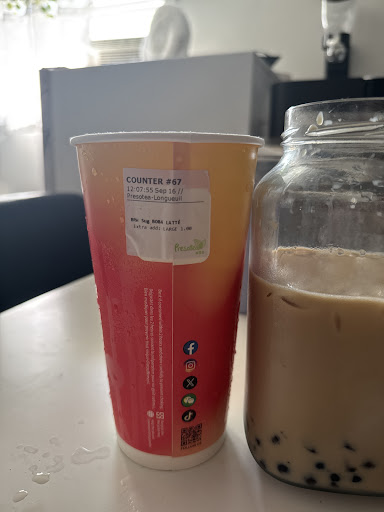Read moreI think the bubble tea is pretty good, not my favorite Presotea location, but it is satisfying. My biggest issue is the hours of operations. I can't the number of times I walk past it in the morning 9-10am and I'm sad it's closed. Now on top of that, it's been several occasion where it's still not open past 11h15, not even 1 employee in sight. I often come back late from work where I know I'm gonna wait at the terminus for my connection, but it's always closed. The only times I manage to stop is when I come back from work at a "normal" hour AND I just missed my connection (aka I have more than 5min before the next bus).