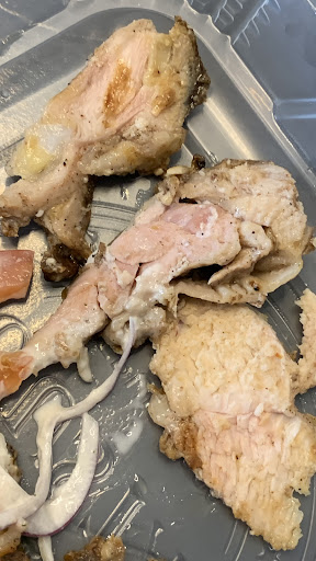The food was absolutely bland, you could see from the scooped rice that some areas were practically white from no seasoning. The potatoes were bitter, however that can be possible, the chicken was ok, thankfully.