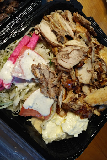 Got home, put baby to bed to enjoy a date night with hubby, open the bag and it wasn't our order !!!! We ordered 2 chicken plates and a wrap, 1 plate had onions and the 2 sauces (not what was asked for and not that the guy even put in the plate initially prepared infront of us) and the pita was 'all dressed' which was not what I saw the man put in ours, you take the time to choose your sides and toppings, then the plate is taken back for the meat but you can't see what happens after, also it's bagged by the grill. The man at the sides counter and another from the back seemed to be arguing about something which I'm sure is why there was the mix up, but that doesn't excuse it.