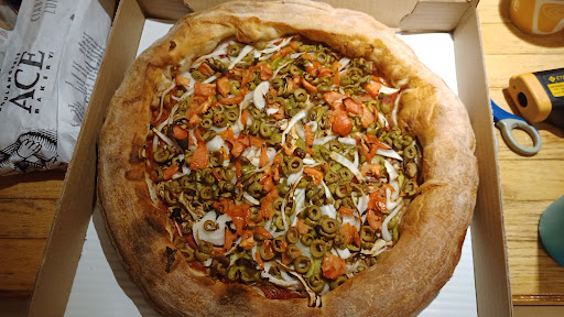 Read moreAucun choix végane sur le menu. Il a fallu demander et se contenter d'une pizza végétarienne avec le fromage de vache en moins. On est en 2022, même les petites épiceries proposent du fromage et de la viande véganes... Et on n'a pas eu le droit (même en le demandant) à un rabais ni à des frites offertes pour compenser le retrait du fromage. Et pourquoi le choix de garniture est aussi pauvre ? Olives, oignons, poivrons et champignons et... c'est tout ? On a payé plus de 40$ (sans compter le pourboire) pour cette triste pizza. Elle est arrivée froide, la pâte était extrêmement mince, molle et mouillée (impossible à manger à la main, et difficile à manger même avec des ustensiles), la croute était énorme (il y a plus de pain que de pizza...), et les légumes manquaient de cuisson. Elle est aussi arrivée très en retard et ce qu'ils appellent des "piments" sur le menu sont en fait de simples poivrons. Ah et ne vous attendez pas à ce qu'elle soit cuite au feu de bois. Je mange bien mieux avec une pizza surgelée de l'épicerie (en plus de coûter 4x moins cher et d'être 2x...