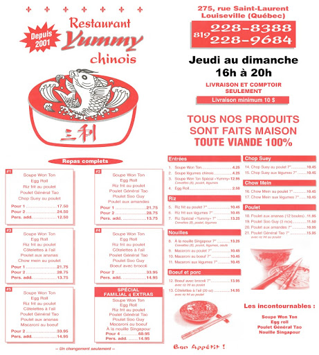 Read moreNous avons mangez avec appétit tout était bon ! On avait fait un petit pickniq familiale. Après avoir terminer de manger mon conjoint a trouver un INSECTE dans son chowmein et pas un insecte comme les autres UN VERS ! Nous avons appeler pour expliquer que cela nous avait couper l'appétit et que s'était quand même UN VER et elle disait que des fois avec le choux s'était normal ( déjà NON on lave notre nourriture) et de deux s'était un ver comme on retrouve lorsque la nourriture n'es plus BONNE . Elle nous a rembourser on lui a ramener le ver dans ses fameux petit plat pour prouver nos dire. Et sa se termine la. PLUS JAMAIS. Alors j'ai de sérieux doute sur la salubrité...