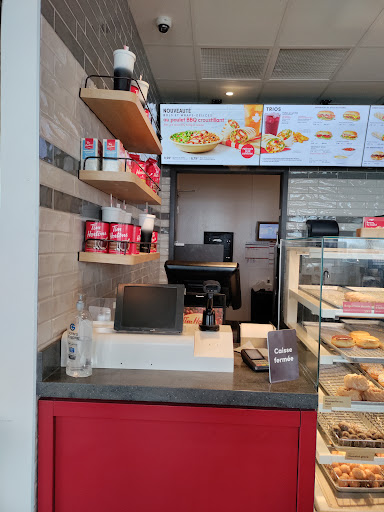 Le samedi 24 nous nous sommes arrĂȘtĂ©s Ă ce Tim Hortons pour passer une commande Ă l'auto. Nous avons commandĂ© un trio wrap au poulet croustillant et un trio wrap au poulet grillĂ©. Malheureusement, le service Ă©tait trĂšs mĂ©diocre, et nous avons eu une mauvaise surprise en ouvrant nos emballages... Les wraps Ă©taient Ă remplis au 3/4...au prix que ça coute ! En plus, le mien contenait Ă peine du poulet. Pour couronner le tout, ma femme a reçu un wrap au poulet habanero, alors quâelle ne mange pas Ă©picĂ©, et surtout, ce nâest pas ce quâelle avait commandĂ©.
