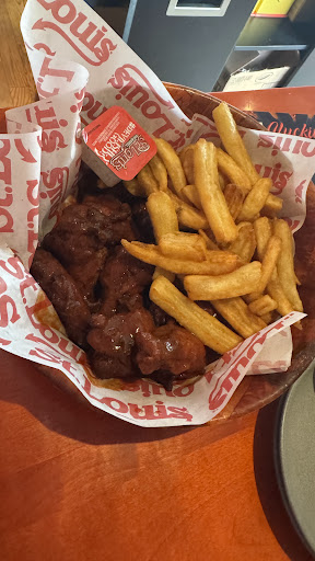 The chicken wings were tough as an old boot. Like chewing on a lump of rubber. The ribs were fatty. Fries were almost cold. The chicken burger was quite nice but covered in hot sauce, so be warned if you don't like spicy food. Expensive for what you get.