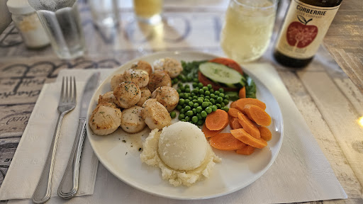 If you have ever watched the Disney-Pixar movie Ratatouille, and the food critic at the end of the movie eats the meal that brings him right back to his childhood, this was the same for me. This scallop meal brought me back to my childhood, when my Babcia (Grandmother) would make her incredible scallop recipe for me. The pumpkin cheesecake is something that my husband and daughter make from scratch (presently). This homemade pumpkin cheesecake was so light and had just the right amount of caramel drizzle sauce. It was excellent. All the desserts from this restaurant are homemade. My husband had the haddock meal and homemade double chocolate cheesecake, which was also excellent.
