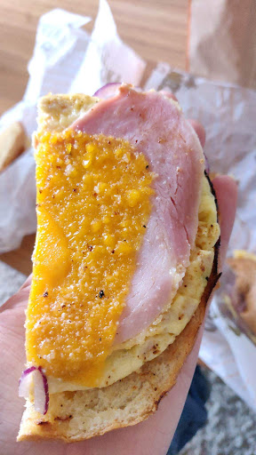 Read moreAsked for a veggie omelette and they specifically went out of their way to cut up ham and hide it in my bagel. When you order a bagel with meat, they will put a full slice on top of the egg. In this case, they chopped it up and put it inside the egg. This should be...