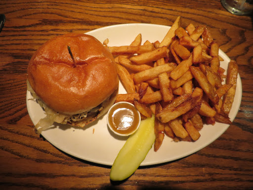 Very disapointing all around. Only reason i left any tip was for the food runner. The person who greeted us seemed put out that we asked to be seated outside if possible, probably because of the tables that had yet to be cleared that did not seem a priorty to most of the staff inside, however we later discovered that making the paying guest feel like an imposition is a main theme. The 4top that came in after us sat at a dirty table till it was cleared. They took our drink order and i was brought a warm ice tea, so warm it immediatly melted the icecubes and was still somehow warm. I asked what they recommended it being our first experience, i was told and chose the fish n chips and the caesar salad because they boasted an inhouse caesar dressing, my partner chose the philly cheesesteak and fries. The wait for our food was borderline, and then compounded by our food waiting for someone to bring us cutlery. The server seemed overwhelmed as it appeared her section was the entire restaurant and was recieving no help from the handful of staff living their best lives behind the bar save one food runner, she fumbled the cutlery and spilled water down the arm and back of my jacket, thankfully it was on the empty chair. The salad might be better than what i experienced, it was hard to appreciate as most of it was under two hot pieces of far overcooked fish the color of an american football and just made the salad warm and glistening with oil. If you want bacon on your caesar salad to bad, you will need to pay extra to have it put back on. But they do put a generous amount of cheap and stale store bought croutons to acompany their made in house dressing(maybe, it might be, kind of tastes generic). The batter for the fish seems as though it was concocted by someone who merely identifies as a cook, if it wasnt parcooked ahead of time the batter was far too thick(seemed like someone mixed beer batter and hushpuppies? there is cornmeal in it...) and required destroying the texture of the fish to still somehow not be fully cooked and also completly over done. All of this was layed upon an entire leaf of romain lettuce that wasnt washed, cleaned of brown edges or even the rotten edge removed(i took a picture) The cheesesteak meat tasted like fridge and the peppers were borderline. The unused bread for the cheasesteak could make decent croutons for the caesar salad. We both had severe indigestion for hours after.
