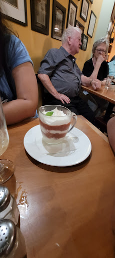 Read moreBusy busy money making spot. Being in the road going through small places all the time, it is rare you will come upon a place like the Red Shoe Pub. Normally small independent eateries, diners and pubs in small places are sparsely visited by and never fully occupied at all times of the day. This is not the fact regarding Red Shoe Pub. Thus place is heaving and full to the brim at most times of the day. Why? Well they do have a good kitchen and great food and offers live music at night, but I guess the secret to this success and a massive stream of people at the tables is because of its famous owners. In fact, I must admit this was also why I knew about it and wanted to check it out as I visited the area. We came on a a Saturday after noon and wanted to enjoy some dinner if possible. At 4 PM we were able to get a table and the restaurant was not quite full yet. The waitress was friendly but the attitude she knew people would come anyway was somewhat apparent. The menu is not too big and the food is an upscale variation of pub food. My wife chose the salmon and I had bill to settle. The meat loaf. A week earlier I’d fallen for someone’s “secret” recipe for a meatloaf in a pub in a no name town and the result was gross. I needed to regain faith in the art of meatloaf. I was not disappointed when it came. Highly recommendable and so was the salmon. With two full strikes it was on to desserts. 4 choices on the menu so with two people you can try 50 Percent of them. Great. We had the Red Shoe take on a banana split and the gingerbread cake. Yummy. And people still came through the door and replaced people who finished and left. It was a constant coming and going and at around 6 the restaurant was filled and with people starting to line up outside. Ok, it was a Saturday and in the holiday season but what a turnover they must have everyday? However, the food was worth it and it was a...