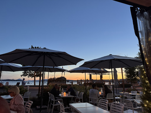 Wonderful Mezze type foods/ dishes. This restaurant serves delicious and original flavoured Mediterranean food in small mezza format plates to be shared, or not, by the table. We ate some Muhammara, deliciously prepared with lots of red pepper spread chocked full of walnuts sweetened with pomegranate molasses and heavily flavoured with sumac Y.U.M. Of course, the classic Greek salad (which wasn’t very classic at all) but they’re version was fresh large tomato quarters with chunks of crunchy cucumbers, red peppers and Kalamata olives. The whole salad just slightly drizzled with oregano vinaigrette. I did miss the onions that usually accompany a Greek salad. Perhaps an oversight, perhaps deliberate to emphasize the other ingredients along with some velvety humus and warm pita. Flowing these appetizer type plates we had some Anise shrimp which were perfectly cooked (a rare accomplishment in restaurants) fresh, ample and nice sized items delicately flavoured. They are absolutely not to be missed. Then an original serving of merguez cut into bites, nested in a thick, delicious pastry stuffed with feta and mozzarella cheeses, flavoured with caramelized onions. A rich, thick, satisfying treat. We couldn’t resist the herb and Parmesan flavoured shoestring fries and soooo happy we had them. As this was lunch we washed the whole down with a crisp, dry and satisfying rosé wine. The service was wanting a bit. Forgotten orders and the such but it’s a relaxed atmosphere so we just went along. This restaurant opens to a large outdoor terrace directly on promenade of Lake Memphrémagog chock full of summer tourists relaxing on a warm summer afternoon and the interior is spacious and comfortably modern. Clean white tablecloths and ample size tables to accommodate all these dishes. The establishment used to be l’Auberge de l’Etoile one of two lakeside hotels in Magog, the other was the Cabana Hotel both having fine restaurants and I worked as a bus boy here many, many decades ago as a teenager. At the time it was a classic French food family type restaurant (so I thought). Anyhow this is great...