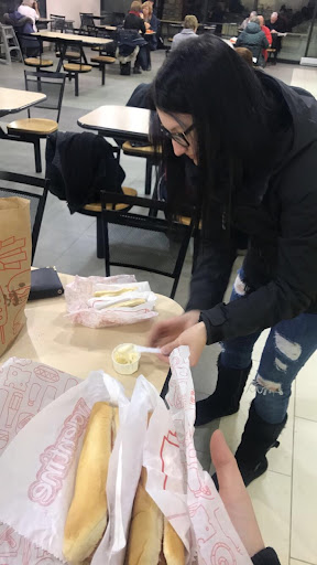 J'ai joint une photo de moi en train de garnir mes hot-dogs sur le coin d'une table et des sachets de ketchups qu'il restait après avoir fini de garnir mes hot dogs... (Habituellement je met autre chose dans mes hot-dogs mais je n'ai pas osé lui...