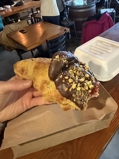 So 20 minutes goes by, I go back for my jalapeno focaccia, no one really knows about it. We look and there is an olive and onion focaccia sitting there which I saw 20 minutes ago. They said they ran out of jalapeno ones. So,I said can I get it heated again please. The thing came back steaming. So no big deal I went and sat down and thought to myself, well, if they didn't have jalapeno focaccia, did they just put out an olive one, hoping I would read their mind? I mean, what if that's someone else's. Anyways, I definitely got my exercise today walking aback and forth from the counter to round up my order lol. +3 if it was meant to be a coffee shop with a mysterious twist to everything.